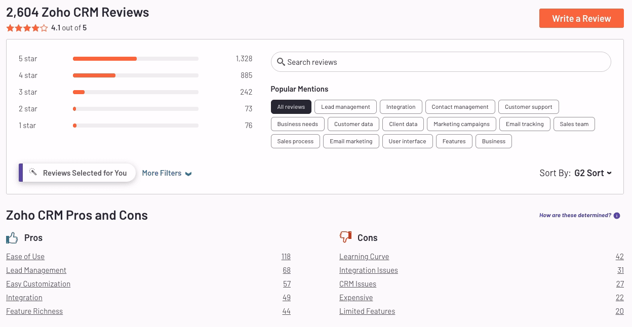 - Reviews section: The reviews section is the crux of the G2 platform. Before they submit their reviews, reviewers are asked to provide high-level details about themselves including their industry, company size, role, and where they work. These details enable G2 to provide context-specific reviews to browsers of all types.
