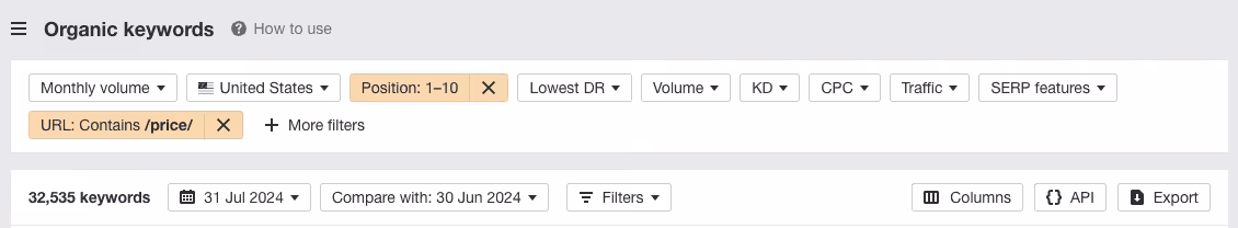 - Price pages rank in the top 10 for more than 32,000 keywords.
