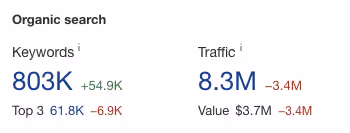 - Around 68,000 price pages draw in over 2.3 million monthly organic visits.