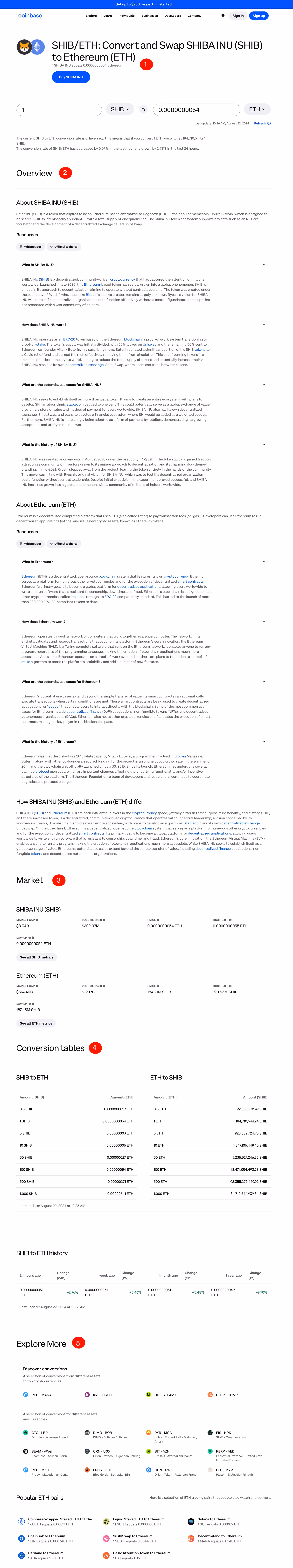 - Calculator: Interinks to different conversion pages (e.g. “SHIB to USD”) to improve crawl-ability among search engines like Google.