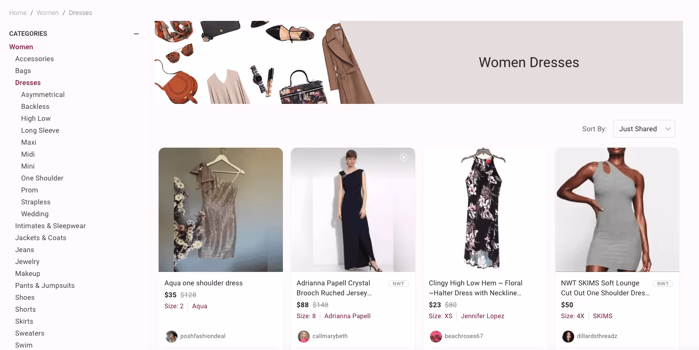 You can get a sense of all the category and subcategory options by taking a look at Poshmark’s comprehensive navigation menu.