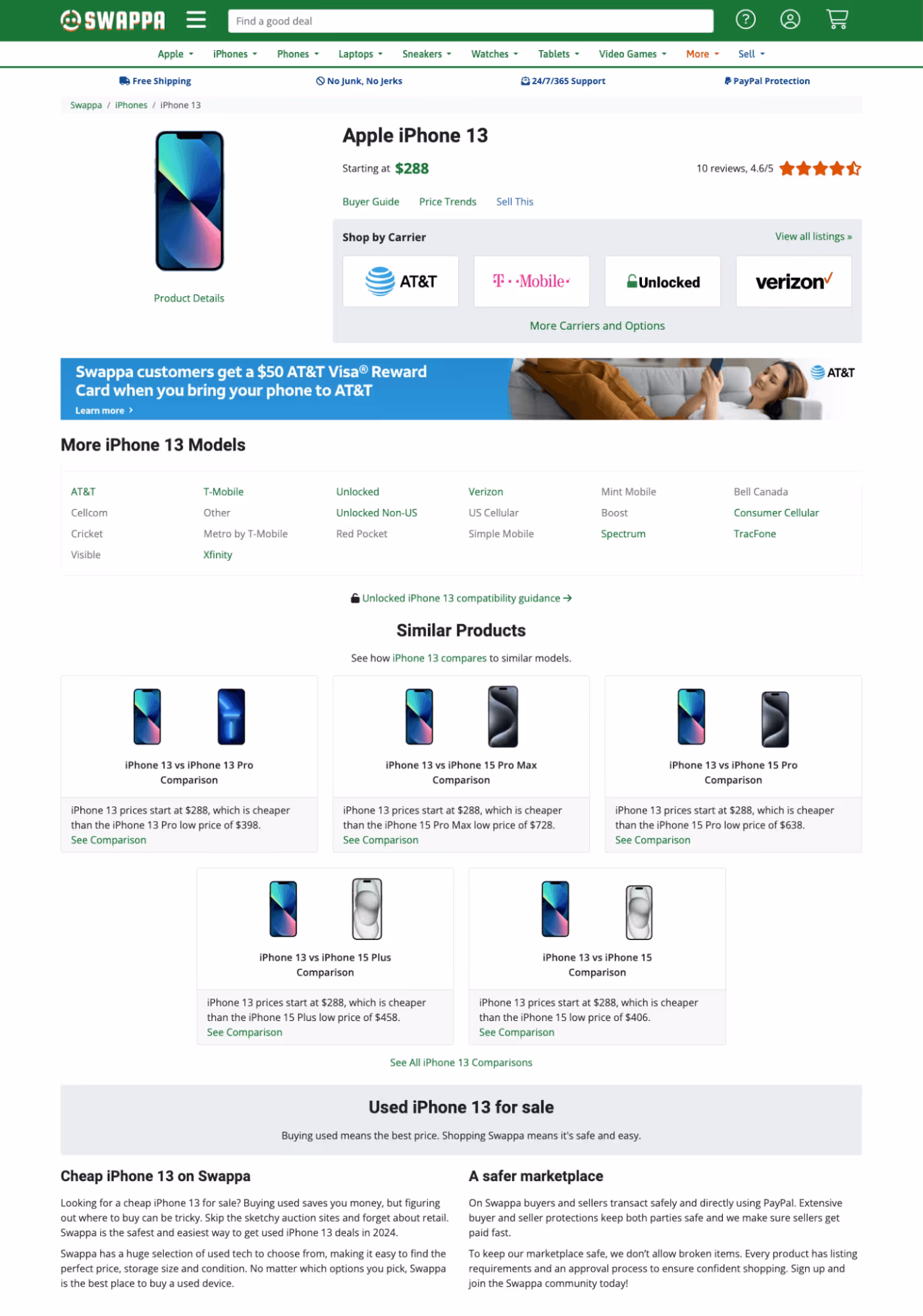Take a look at its Apple iPhone 13 page for an example.