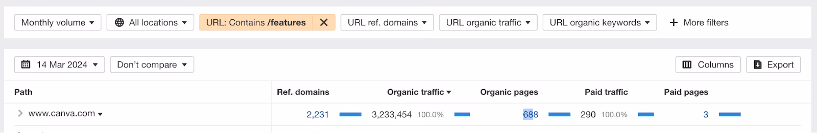 - Close to 700 “/features” pages result in over 3.2 million organic monthly visits.