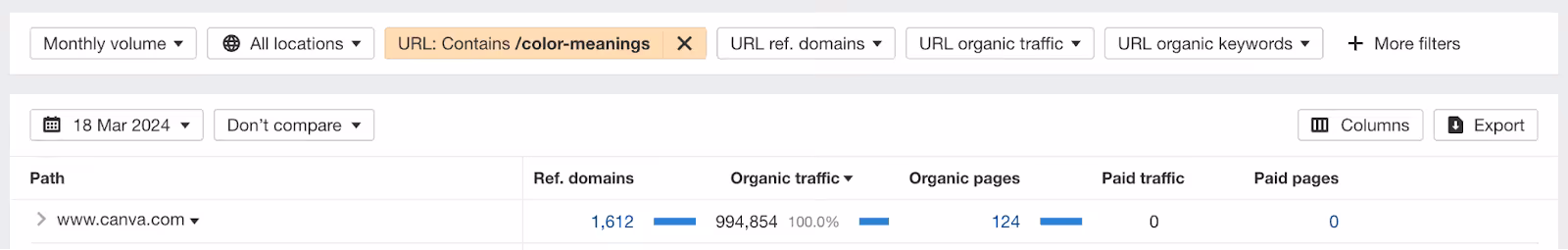 Canva has created 124 color pages which generate about 995,000 organic visits per month.