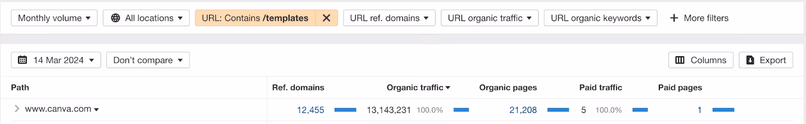 - Around 21,000 “/templates” pages result in over 13.1 million organic monthly visits.