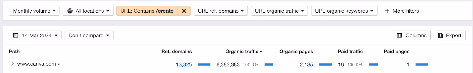 - Approximately 2,000 “/create” pages result in around 6.4 million organic monthly visits.
