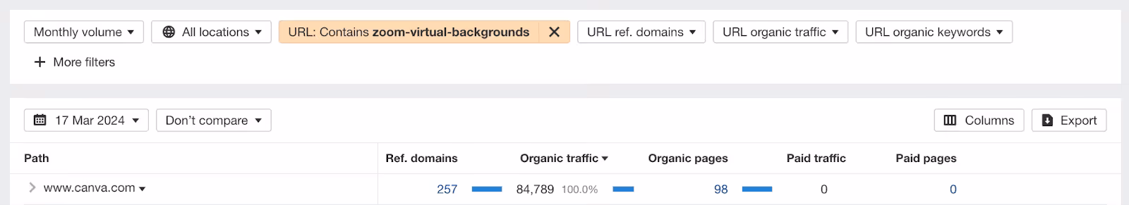Canva’s Zoom template pages continue to receive backlinks from high-domain authority websites. In total, the Zoom pages are backlinked more than 780 times across the web.