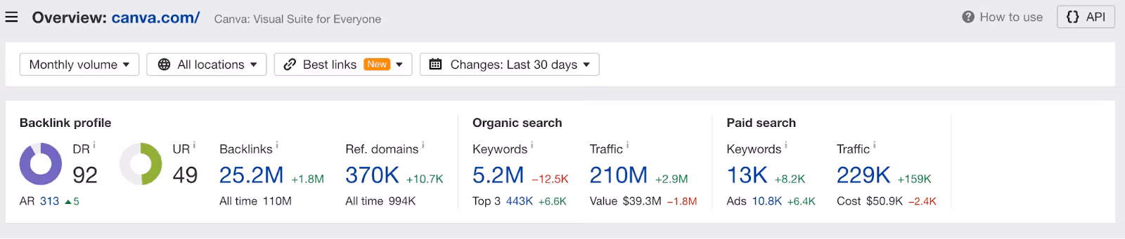 Canva has more than 25 million backlinks to its site, further boosting its SEO performance. Many of these backlinks lead to Canva’s pSEO pages — likely because they are solution-oriented and work well as reference points for “how to” content across the web.