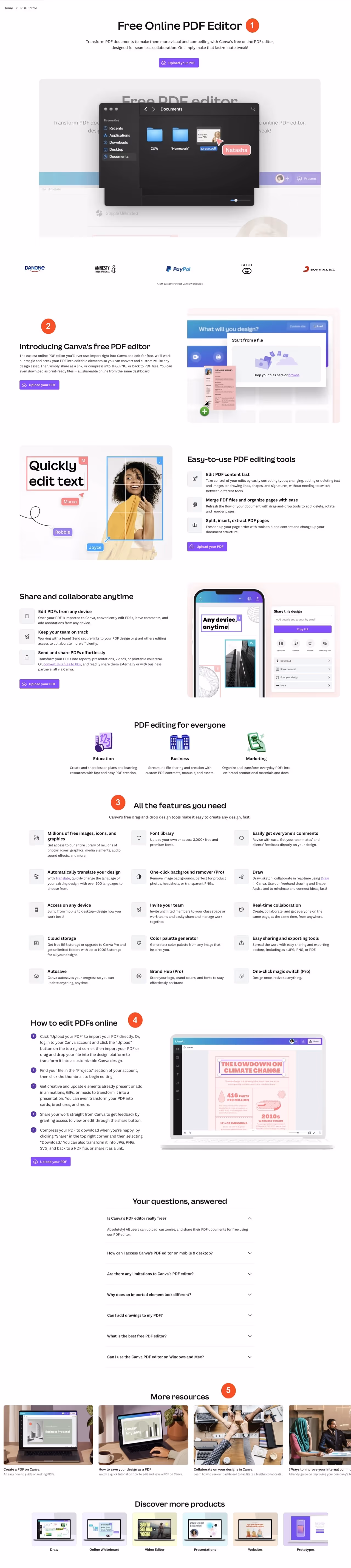 - Section two highlights the benefits of the feature and emphasizes Canva’s value proposition using phrases like “easy-to-use” and “effortless” to encourage conversions. After each value proposition is a context-specific CTA that clicks to a design page for the visitor to start creating on Canva.