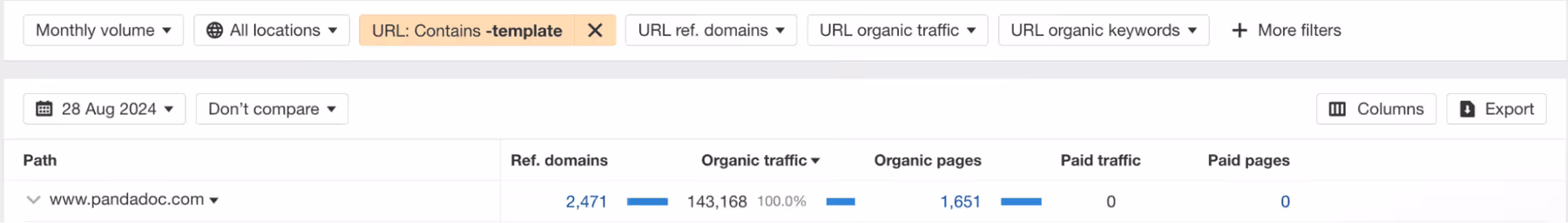 PandaDoc, an all-in-one document automation platform, enables sales teams to create, approve, and e-sign proposals, quotes, and contracts. To capture sales professionals searching for proposal, quote, and contract templates, PandaDoc created a library of more than 1,000 templates for users to customize within the platform. This strategy yields over 140,000 monthly organic visits (per Ahrefs data).
