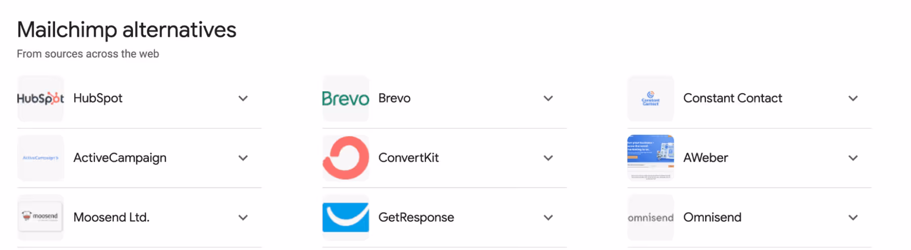 A quick Google search for “Mailchimp competitors” offers the following result.