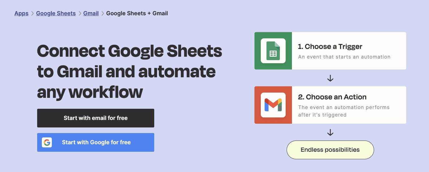 Call-to-action: Try [App A] + [App B] integration on Zapier
